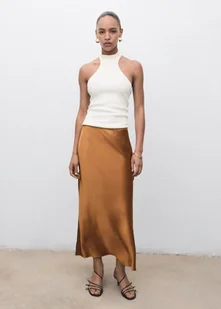 MANGO - Satynowa spódnica midi koniakowy - XS - Kobieta