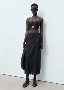 MANGO - Spódnica bawełniana z haftem czarny - XL - Kobieta