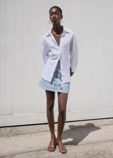 Tkanina 100% bawełna, Krótki krój, Prosty krój, Spódnica haftowana, Zamek błyskawiczny z boku, Podszewka 100% bawełna