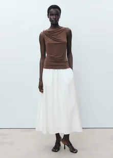 MANGO - Spódnica lniana o rozszerzanym kroju biały - 38 - Kobieta