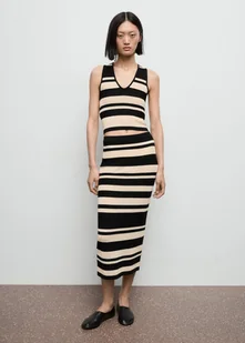 MANGO - Spódnica midi z dzianiny w paski czarny - XL - Kobieta