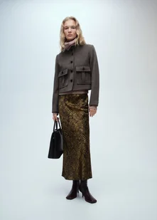 MANGO - Spódnica o rozszerzanym kroju ze wzorem skóry krokodyla brązowy - XXL - Kobieta