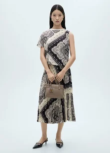 Tkanina płynna, Plisowany design, Midi design, Design w kształcie litery A, Wzór paisley, Kryte zapięcie na zamek z boku