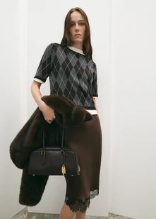 MANGO - Spódnica satynowa z koronką brązowy - XL - Kobieta