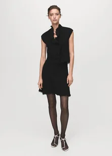 MANGO - Spódnica tweedowa z postrzępionymi wykończeniami czarny - S - Kobieta