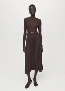 MANGO - Sukienka o rozszerzanym kroju midi z paskiem czekoladowy - XS - Kobieta