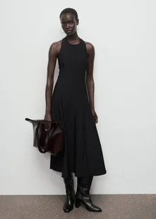 MANGO - Sukienka z dekoltem halter i zakładkami czarny - XL - Kobieta