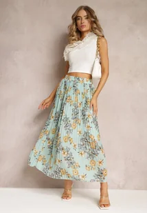 Miętowa Spódnica Ozdobiona Plisami z Gumką w Pasie i Elastyczną Podszewką Vislo - Renee