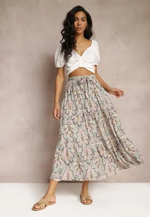 Miętowa Wiskozowa Spódnica Maxi z Gumką w Talii z Materiałowym Paskiem Annalicia