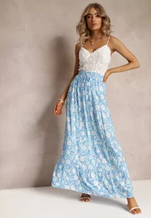 Niebieska Bawełniana Spódnica Maxi w Kwiaty Eile
