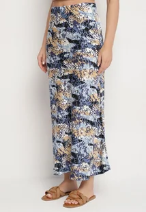 Niebieska Wiskozowa Spódnica z Wysokim Stanem i Abstrakcyjnym Wzorem Rinalisa