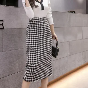 Ołówkowa spódnica midi w pepitkę - Czarny S