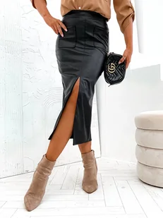 Ołówkowa spódnica z ekoskóry czarna (82104) - MOON