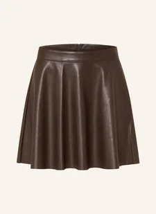 Rozkloszowany krój. Wykończenie bez podszewki. Gładki materiał. Jednolity kolor. Imitacja skóry. Zamek błyskawiczny