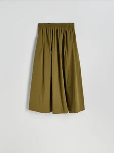 Spódnica o rozkloszowanym kroju, wykonana z technicznej tkaniny z bawełną.