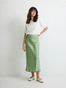 Reserved - Spódnica midi z satynowym wykończeniem - jasnozielony