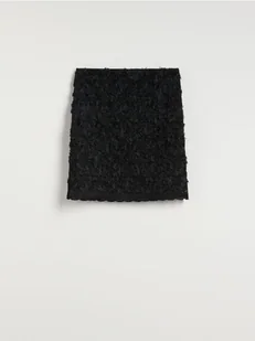 Krótka spódnica o dopasowanym kroju, wykonana z tkaniny.