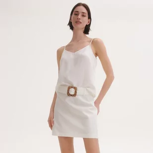 Reserved - Spódnica mini z paskiem - złamana biel