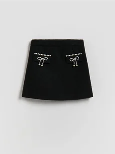 Reserved - Tweedowa spódnica z aplikacją - czarny