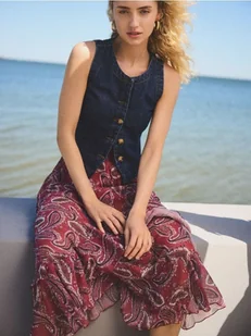 Spódnica o lekko rozkloszowanym kroju, wykonana z tkaniny.