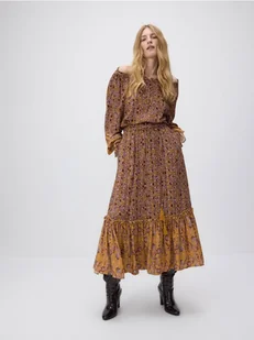 Reserved - Wzorzysta spódnica z wiskozy - brązowy