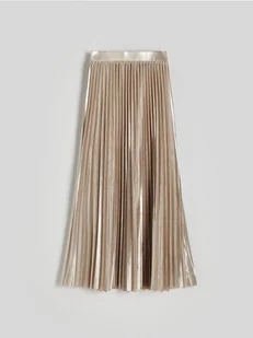 Reserved - Złota spódnica midi z plisowaniem - złoty