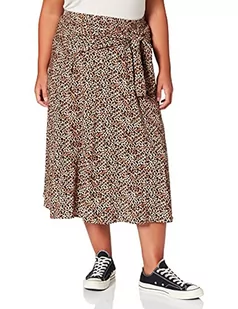 Samoon Damska spódnica midi z węzłami z materiału EcoVero z wiskozy spódnica długa szeroka spódnica nadruk zwierzęcy długość do łydek, Light Tannin Brown wzór, 56