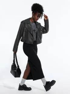 Sinsay - Jeansowa spódnica - czarny - rozcięcie z tyłu,długość midi,dopasowany krój,zaszewki podkreślające talię,gumka w pasie