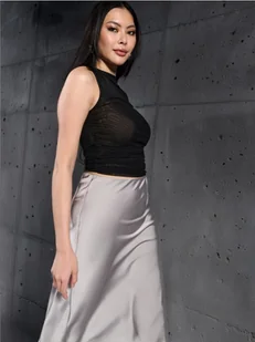 Sinsay - Spódnica midi - szary - satynowe wykończenie,gumka w talii,długość midi
