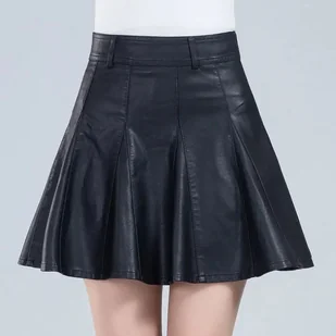 Skórzana rozkloszowana spódnica mini - Czarny XXXXL