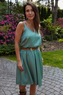 Kobieca, wiskozowa spódnica o długości przed kolano w kolorze seledynowym uszyta z wysokiej jakości satynowej wiskozy. Doskonale modeluje sylwetkę, akcentując talię. Dzięki wygodnej gumie dopasowuje się do ...