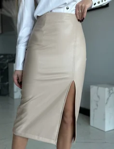 Skórzana Elegancja z Pazurem: Polska Spódnica Midi z Rozcięciem - HIT Sezonu! Kolor Jasny Beż/krem Produkt Polski Premium Postaw na najwyższą jakość i lokalny design! Ta spódnica została zaprojektowana i uszyta w Polsce, z dbałością o każdy, nawet najmniejszy detal. Kupując ją, wspierasz polską przedsiębiorczość i masz gwarancję świetnego wykonania. Odkryj Swój Nowy Power Look Marzysz o stylizacji, która łączy klasę, pewność siebie i odrobinę zadziorności? Ta spódnica midi wykonana z ekskluzywnej ekoskóry jest stworzona właśnie dla Ciebie! Jej fason jest idealnym połączeniem elegancji i nowoczesnych trendów. Doskonała zarówno do biura, jak i na wieczorne wyjście.