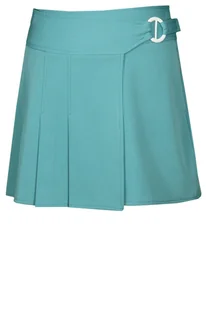 Mini spódniczka, biodrówka, w kształcie trapezu. Uszyta z elastycznej tkaniny. Nie prześwituje, nie ulega gnieceniu. Przód podwójny, zakładany kopertowo. Z lewej strony klamra.