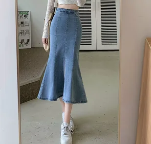 Spódnica jeansowa midi z rozcięciem - Niebieski L