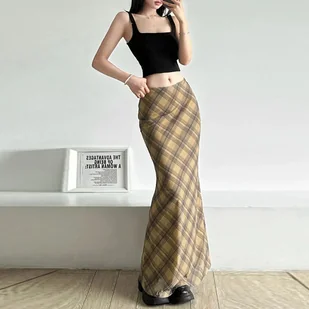Spódnica maxi w kratę - Beżowy L