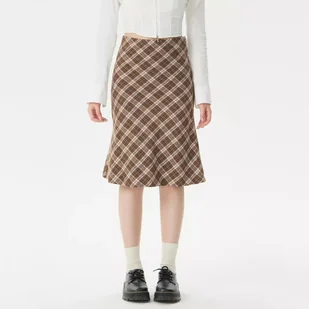 Spódnica midi w kratę - Brązowy M