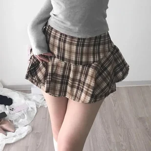 Spódnica mini w kratę - Brązowy S