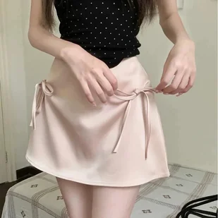 CECHY PRODUKTU: Spódnica mini Materiał satynowy Kokardy ozdobne
