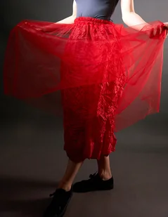 Spódnica tiulowa czerwona na plisowanej - gniecionej podszewce