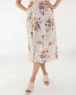 Ecru Spódnica Rozkloszowana Midi w Kolorowe Kwiaty
