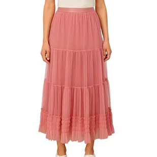Tiulowa spódnica maxi z falbanami – romantyczny look na co dzień i na specjalne okazje. Ta lekka, zwiewna spódnica maxi w kolorze pudrowego różu to idealna p...