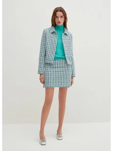 Spódnica w kolorze turkusowo-niebieskim - wysokość pasa: high waist - zapięcie: suwak z tyłu - krój: wąski - wzór: kratka