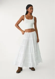 Stradivarius Długa spódnica z falbankami Ecru XS
