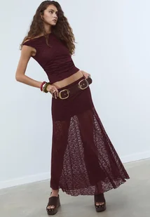 Stradivarius Koronkowa spódnica midi Fioletowy L