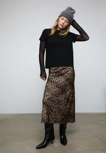 Zwiewna spódnica midi uszyta z satynowej tkaniny. Wysoki stan i elastyczna talia. Dół wykończony w kształcie litery A. Dostępna w różnych kolorach.