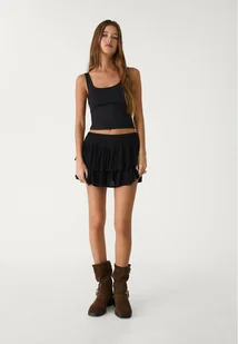 Stradivarius Spódnico-spodnie mini z falbankami Czarny XL