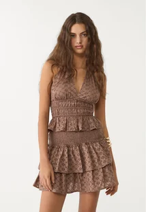 Krótka spódnico-spodnie ze średnim stanem i elastyczną talią. Falbana na dole z perforowanymi haftami w tym samym odcieniu. Wewnętrzna podszewka typu spodenki. Dostępna w różnych kolorach.