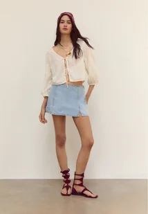 Stradivarius Mini spódnico-spodnie z rozcięciami JASNONIEBIESKI DENIM 40