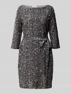 Sukienka mini damska Vila;Mieszanka materiałów z dodatkiem streczu;Taliowany krój;Model ‘FAITH’;Cekinowe obszycie;Dekolt w łódkę;Rękaw 3/4;Nieprzejrzysta halka;Pasek w talii;Długość tyłu w rozmiarze S: 88 cm;Szerokość klatki piersiowej w rozmiarze S: 42 cm;Długość rękawa w rozmiarze S: 44 cm