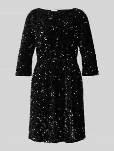 Sukienka mini damska Vila;Mieszanka materiałów z dodatkiem streczu;Taliowany krój;Model ‘FAITH’;Cekinowe obszycie;Dekolt w łódkę;Rękaw 3/4;Nieprzejrzysta halka;Pasek w talii;Długość tyłu w rozmiarze S: 88 cm;Szerokość klatki piersiowej w rozmiarze S: 42 cm;Długość rękawa w rozmiarze S: 44 cm